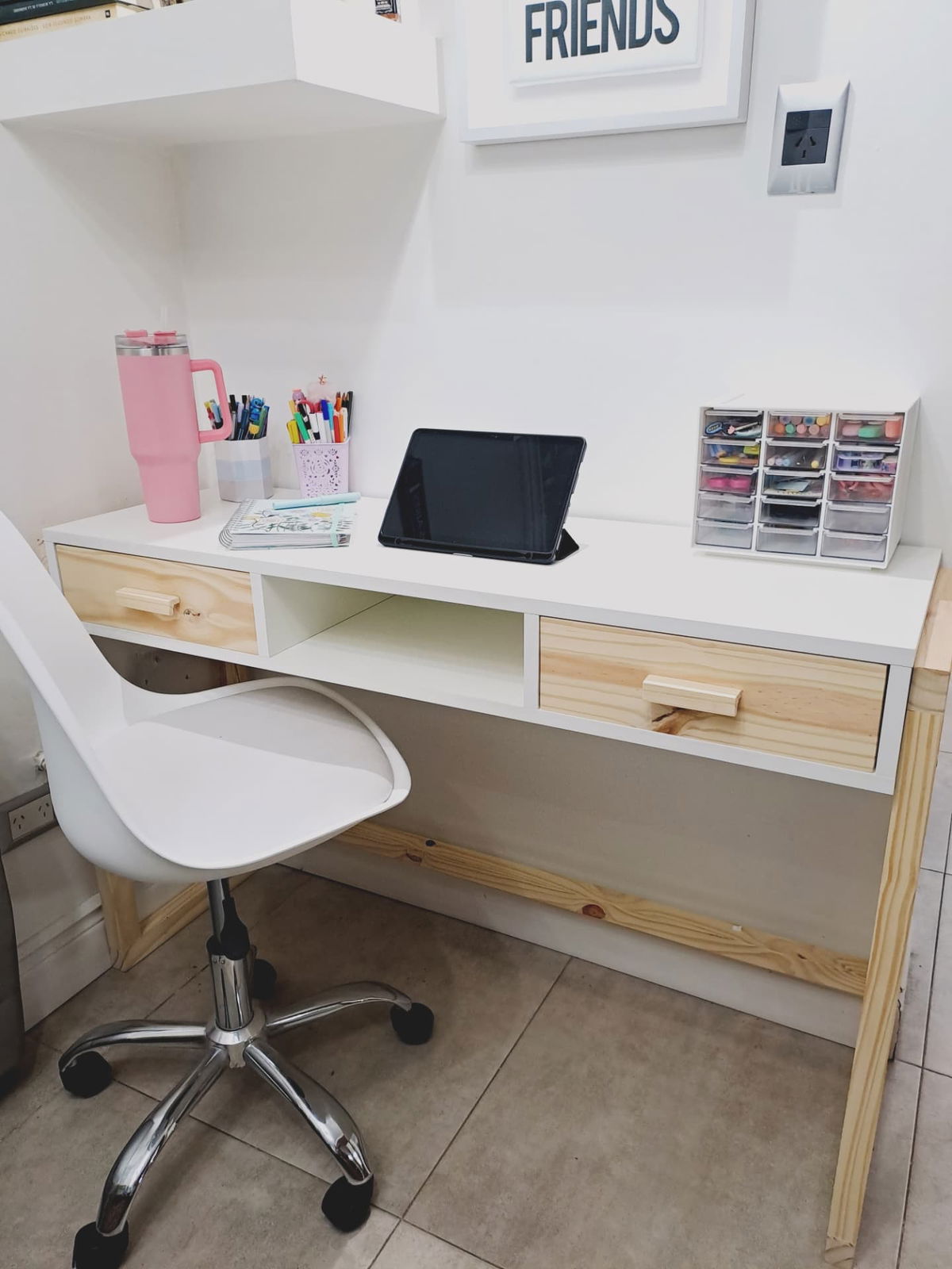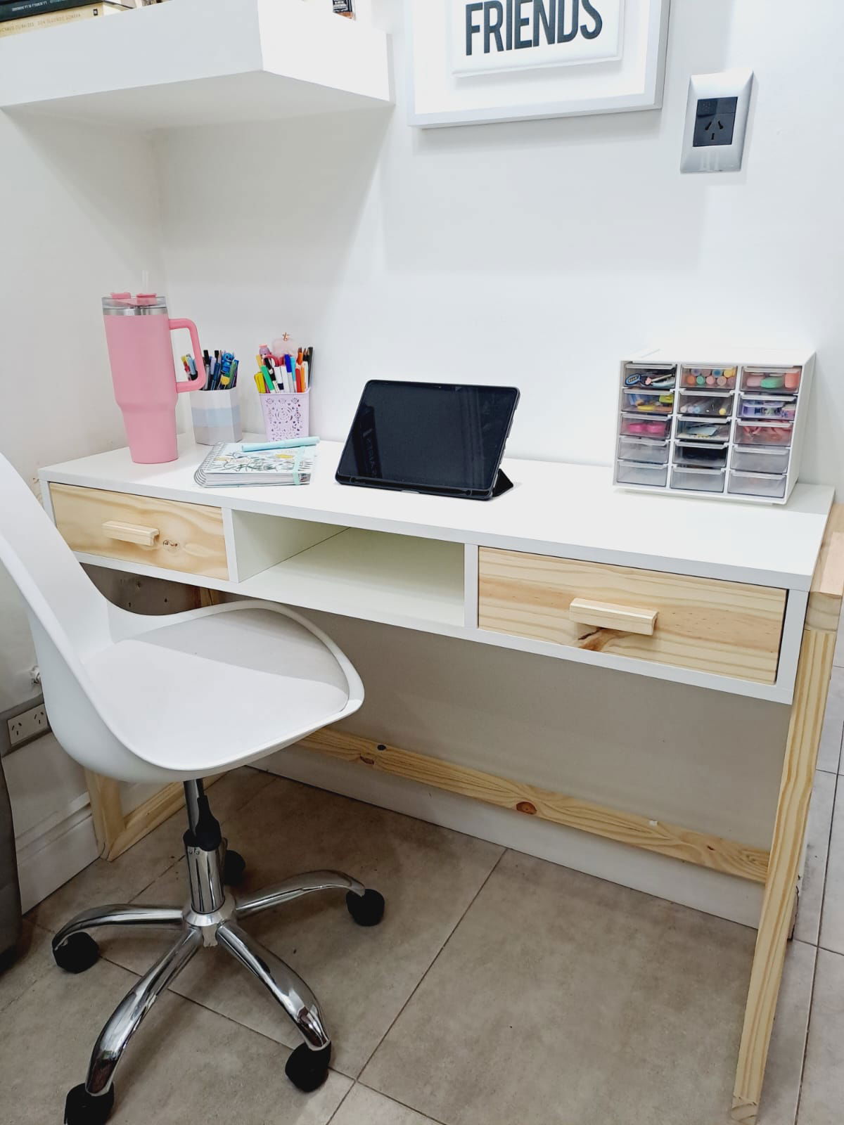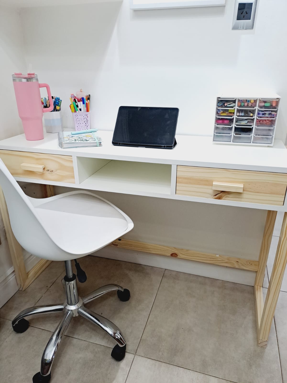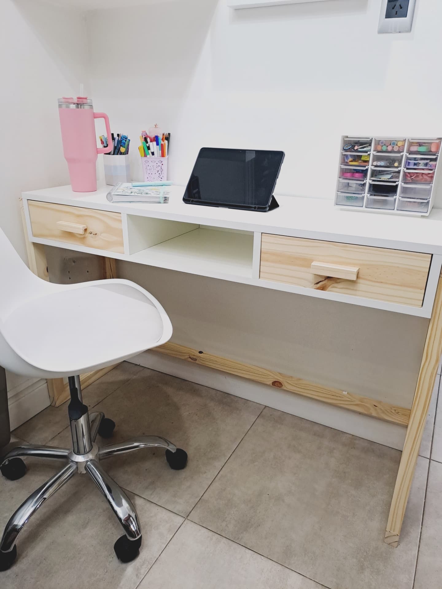 Realizado en melamina blanca de 18 mm y patas de pino.